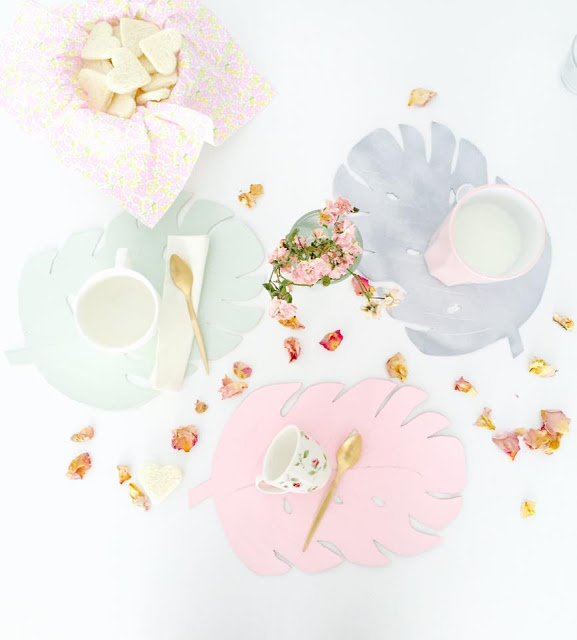 Conocí a Karina gracias a un diy precioso que publicó hace unas semanas en su blog, en el que convirtió unas simples planchas de goma eva en estos preciosos salva manteles con forma de hoja de monstera de tonos pastel. ¿Preciosísimos verdad?