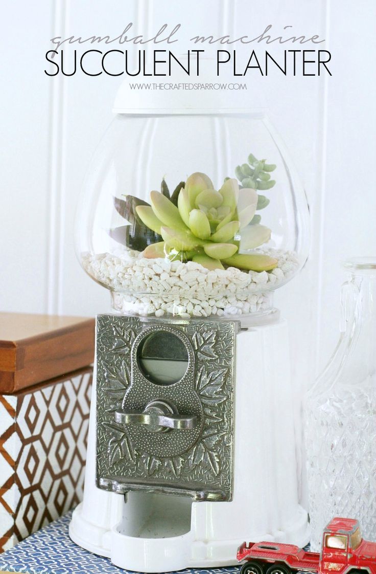 Me encanta esta máquina de chicles reconvertida en maceta para cactus. Queda súper original, no?