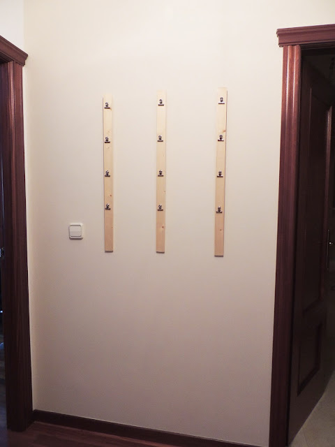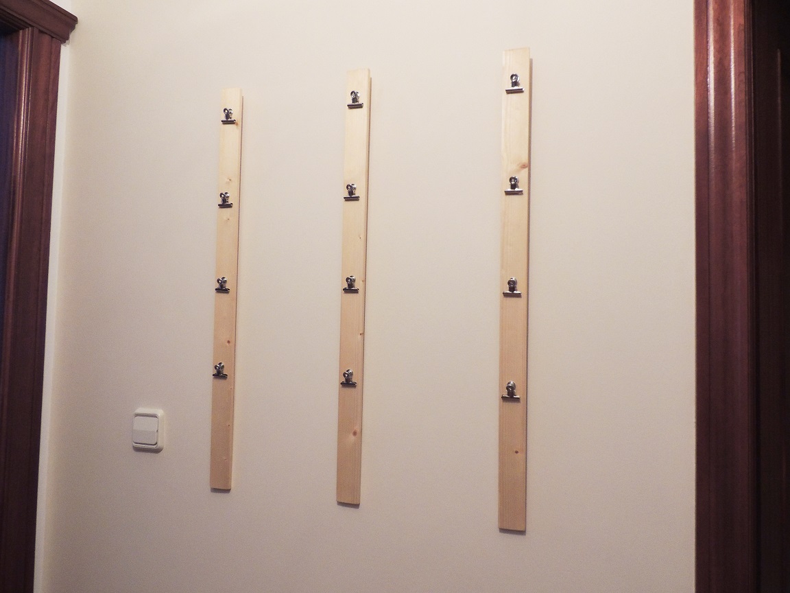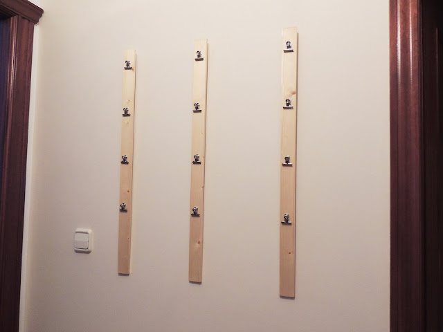 Cuando los hayamos colocado todos, damos la vuelta a los listones y les colocamos la hembrilla para poder colgarlos en la pared.