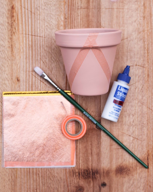 Cuando esté bien seca, colocamos la cinta de carrocero con el dibujo que más nos guste, en este caso han elegido un triángulo, pero podemos hacer lo que más nos guste. (Yo además, cubriría bien el resto de la maceta para que se nos vaya la pintura y la acabaremos manchando).