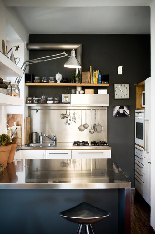 El post de hoy está centrado en las cocinas pequeñas. Me parecen mucho más interesantes que las grandes («decorativamente» hablando), porque hay que poner mucho más cuidado en su reparto y sobre todo en la decoración. Lo ideal es conseguir tener lo mismo que tendríamos en una cocina grande sin renunciar a nada.