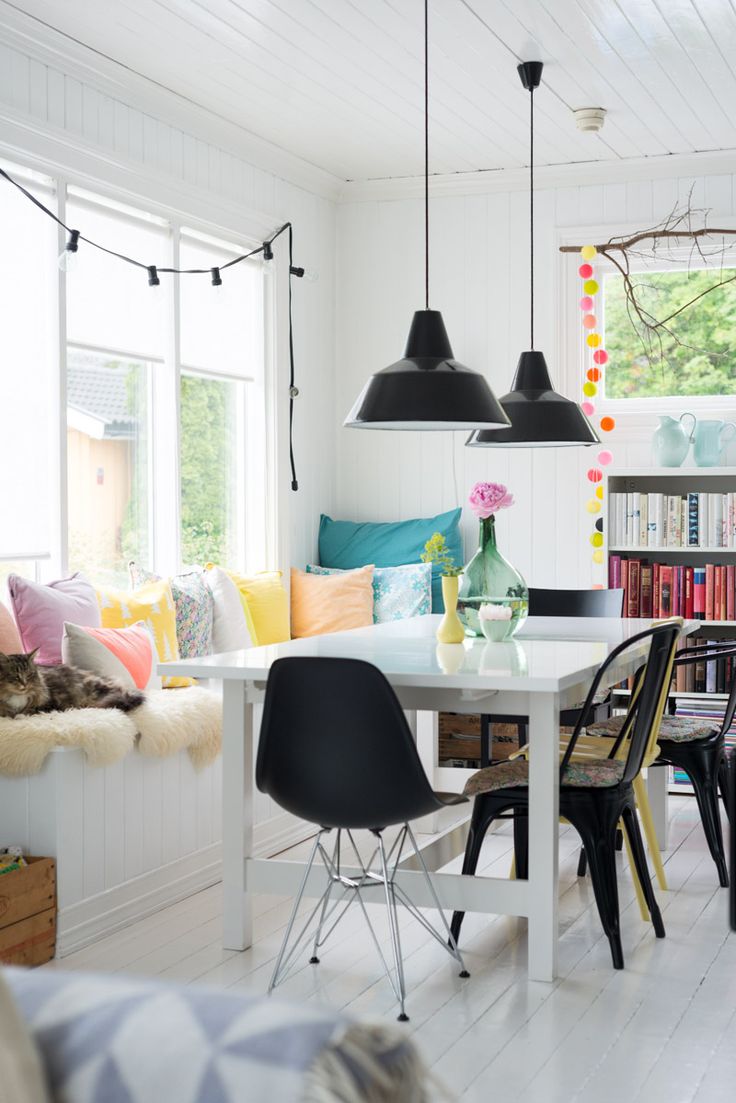 Si os gusta esta idea pero os da un poco de miedo peter la pata, podéis empezar con sólo dos colores «que se lleven bien» o por la idea de mezclar sillas de estilos y colores diferentes. Además de conseguir un estilo desenfadado dará un toque muy divertido a tu comedor o cocina (y será el centro de las conversaciones).