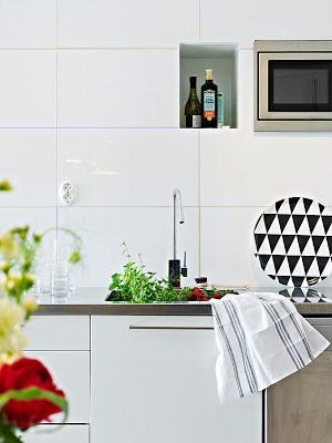Me encanta este papel! Parece un poco de la casa de la abuela, pero en una pared sola, y con el resto de la decoración en colores tan fríos, creo que le da un toque de personalidad importante.