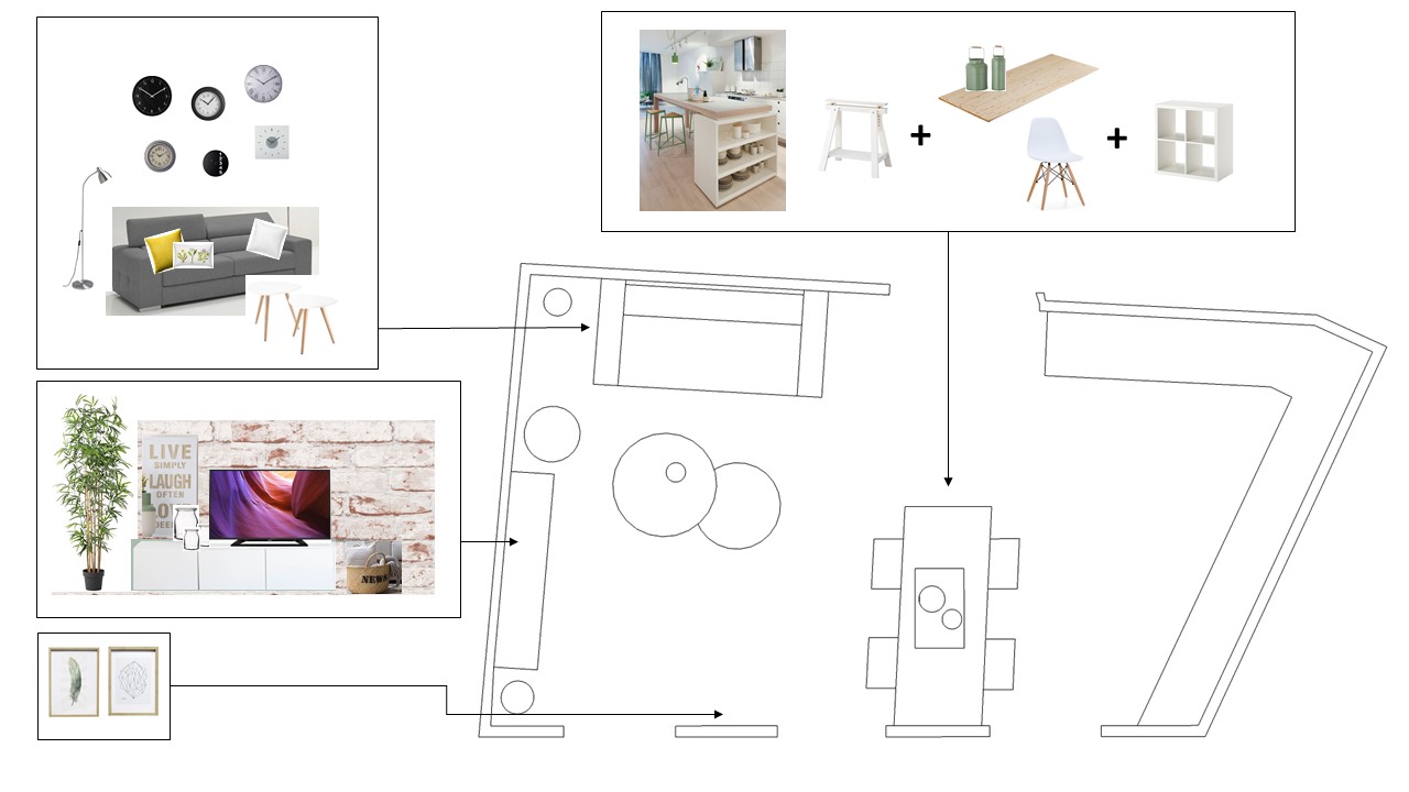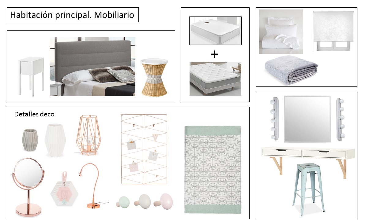 Estas fueron las propuestas de mobiliario y decoración que le envié a Virginia.