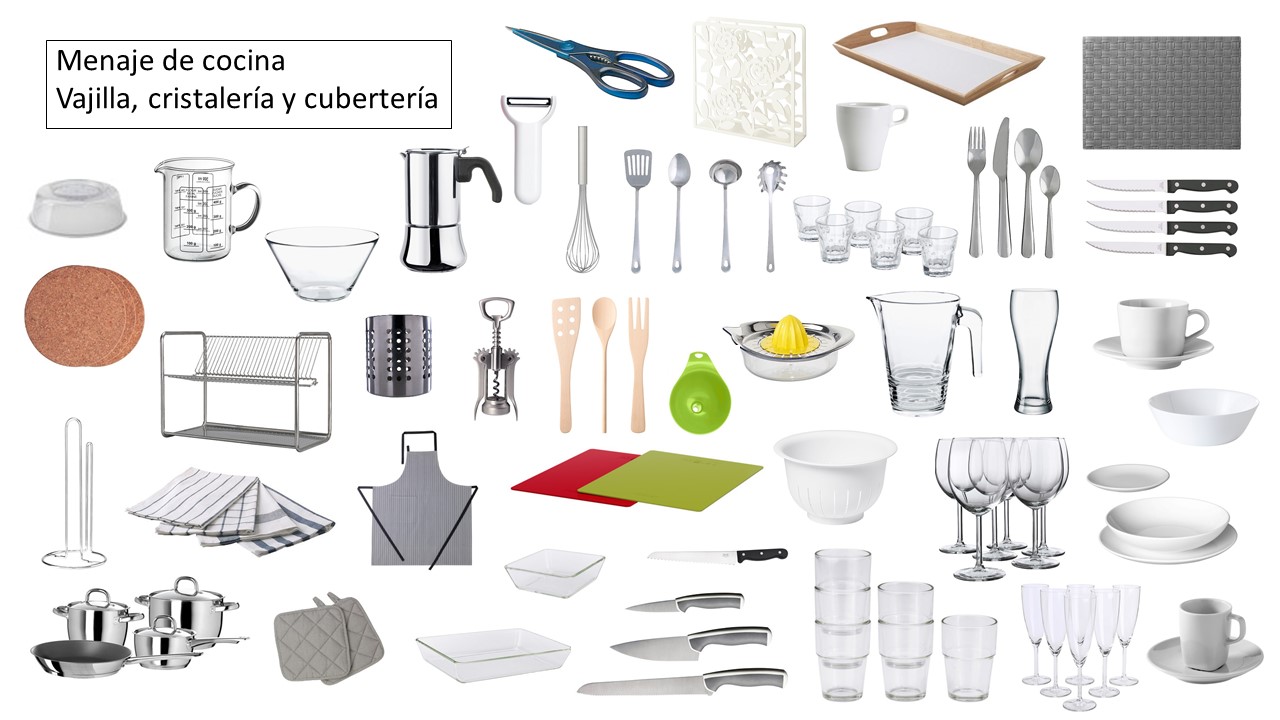 Además, puesto que se trataba de un apartamento para el alquiler de vacaciones había que acondicionarlo con todos los enseres de cocina (cubertería, vajilla, cristalería, menaje…) así como con los textiles para la cama y el baño, por lo que también se hizo una relación detallada de donde encontrar cada pieza.