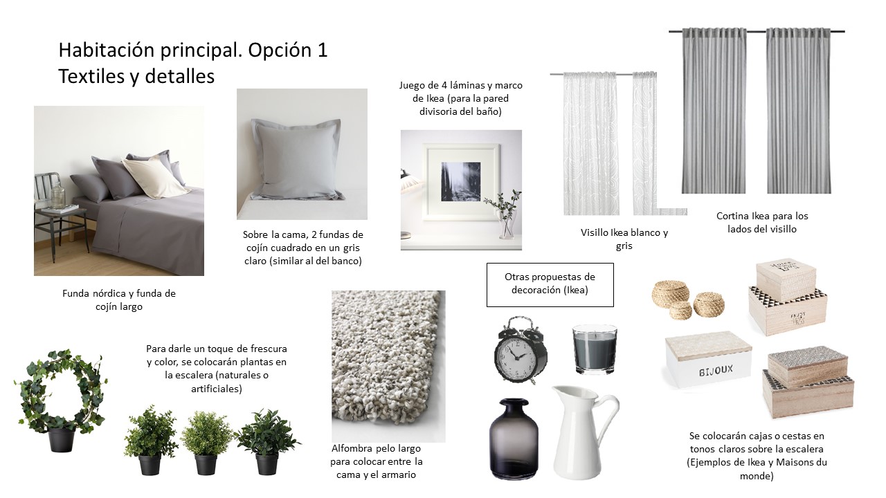 Esta fue la propuesta de decoración ganadora. Elegí piezas sencillas que no le robaran protagonismo a la pared de ladrillo, para que ésta fuera el punto principal de la habitación. Algunas de las piezas que ya tenían en la habitación encajaban perfectamente en la nueva deco, así que en el proyecto se decidió mantenerlas. Luego Laia añadió su toque de buen gusto para cambiar algunos detalles y con su granito de arena, terminó de conseguir una habitación 100% personal que se identificara con ellos.