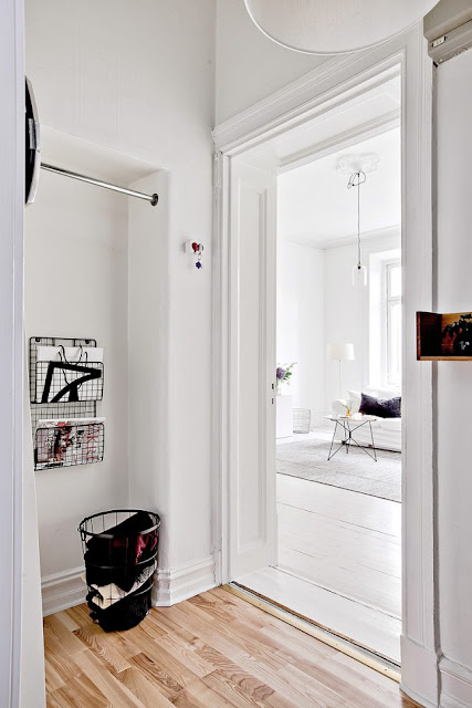 Este precioso apartamento me ha llamado la atención hasta el punto de querer compartirlo con vosotros por su sencillez, su calidez, su luz… Es el espíritu total white, del estilo nórdico, con toques invernales concentrado en casi sesenta metros cuadrados.