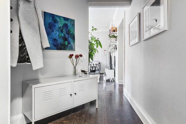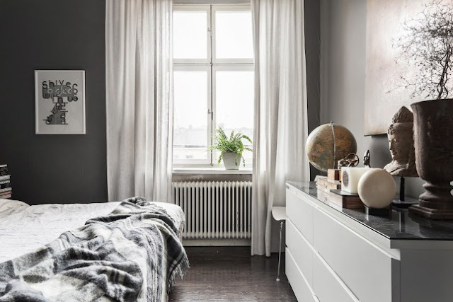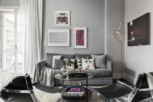 Enamorada de este piso! Este color gris me encanta para combinarlo con el blanco, lo tengo pendiente para cuando vuelva a pintar. Y la chimenea…aix…que bonita 🙂
