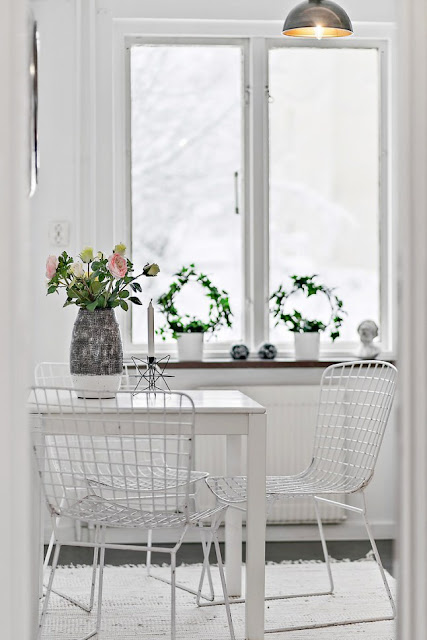 Otra cosa en la que me he fijado, es en las baldas que hay bajo las ventanas. Son sitios que normalmente no podemos aprovechar y ésta es una forma perfecta para tener un rincón especial en el que colocar las plantas que necesitan más luz o un detalle que nos resulte especial.