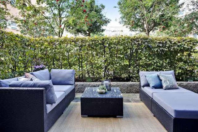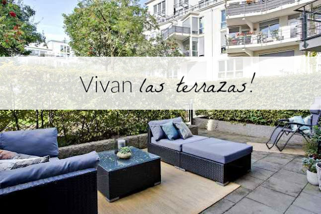 Y ahora vamos a lo importante, a la reina de la casa, nos vamos a la terraza! Han separado el espacio en varias zonas, una más pequeña para un café o una cena rápida y otra con sillones más grandes para reunirse con amigos, leer o tomar el sol.