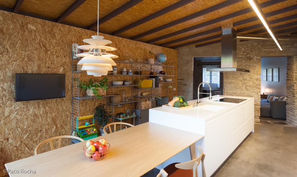 ¿Qué me decís de la pared de paneles de madera prensada de la cocina? Es una preciosidad que ayuda a mantener el calor, aisla y decora a partes iguales.