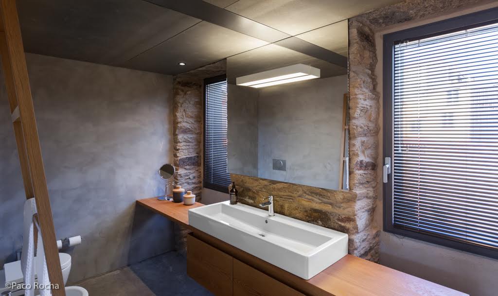 Como no podía ser de otra manera, y siguiendo con la filosofía de trabajo de la empresa, para la restauración de esta vivienda, han respetado al máximo los elementos existentes como la madera y la piedra, combinados con materiales modernos y novedosos, pero igualmente respetuosos con la naturaleza como el OSB (compuesto de virutas de madera prensada), el viroc (compuesto de serrín y cemento) o el Heraklit (compuesto de láminas de madera y lechada de cemento).