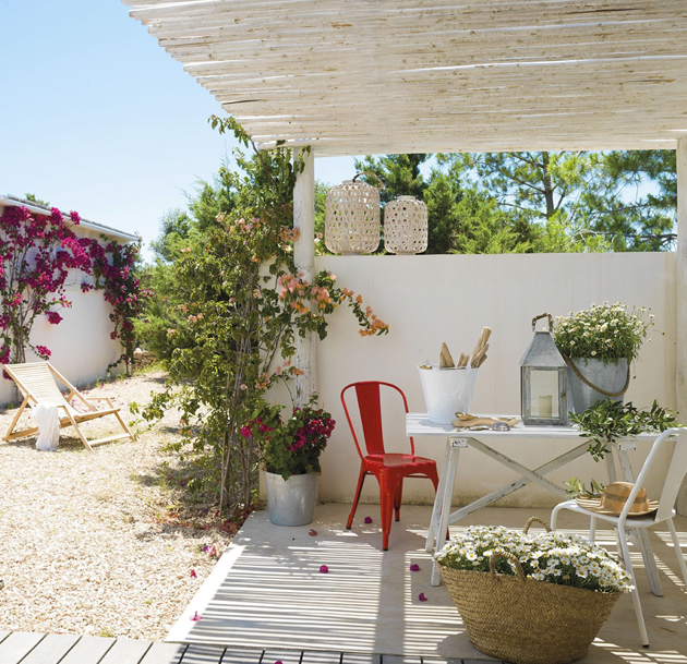Esta casa es obra de la interiorista Estela Gómez Lupión, quien ha sabido combinar a la perfección el estilo blanco del mediterráneo con fibras naturales y muebles rescatados, consiguiendo una casa perfecta para pasar el verano.